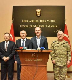 Makamda bir süre Vali Ata ile görüşen Bakan Soylu, daha sonra Valilik Abdurrahman Melek Toplantı Salonu’nda Vali Ata, İl Jandarma Komutanı J. Alb. Turgay Aras ve İl Emniyet Müdürü Kamil Karabörk’ten brifing aldı. Toplantıya Bakan Soylu’nun yanı sıra Hatay Valisi Erdal Ata, Jandarma Genel Komutanı Orgeneral Yaşar Güler, Emniyet Genel Müdürü Selami Altınok, Göç İdaresi Genel Müdürü Atilla Toros ve İlçe Kaymakamları da katıldı.