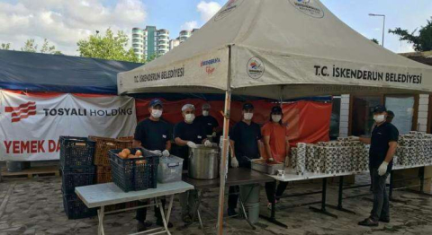 AFAD ve Kızılay koordinasyonuyla, depremzedelerin temel ihtiyaç ve gıda yardımlarının sağlanmasında seferber olan Tosyalı Holding, ilk günden beri yemek yardımını İskenderun’un iki mahallesinde sürdürüyor. Şirketin bünyesindeki ekiplerle günde 8 bin kişilik yemek veren Tosyalı Holding, kurduğu mobil fırın ile çadır kentlerin 20 bin kişilik ekmek ihtiyacını da karşılıyor.