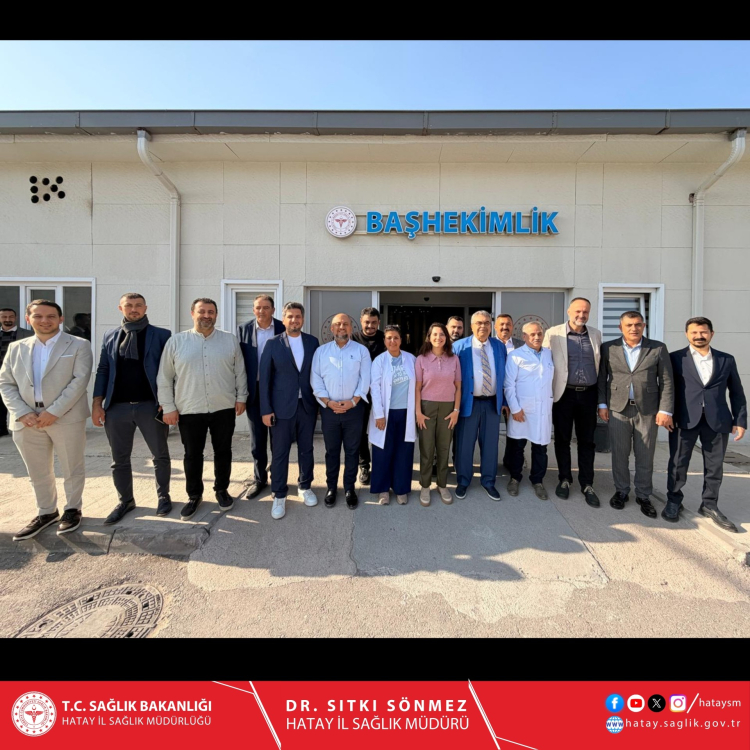 Hatay İl Sağlık Müdürü Dr. Sıtkı Sönmez, beraberinde Destek Hizmetleri Başkanı Abdullah Denizoğlu, Kamu Hastaneleri Hizmetleri Başkanı Dr. Selçuk Öntürk, Sağlık Hizmetleri-İlaç ve Tıbbi Cihaz Hizmetleri Başkanı Dr. Tolga Alkan ve Personel Hizmetleri Başkanı Murad Yılmaz ile birlikte, Defne Hastanesi Başhekimliği görevine atanan Dr. Mahmut Bayrakçıoğlu’na hayırlı olsun ziyaretinde bulundu.