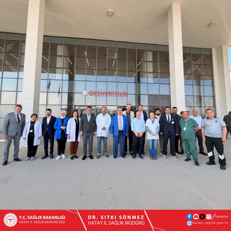 Hatay İl Sağlık Müdürü Dr. Sıtkı Sönmez, beraberinde Destek Hizmetleri Başkanı Abdullah Denizoğlu, Kamu Hastaneleri Hizmetleri Başkanı Dr. Selçuk Öntürk, Sağlık Hizmetleri-İlaç ve Tıbbi Cihaz Hizmetleri Başkanı Dr. Tolga Alkan ve Personel Hizmetleri Başkanı Murad Yılmaz ile birlikte, Hatay Eğitim ve Araştırma Hastanesi Başhekimliği görevine atanan Uzm. Dr. Barış Kavvasoğlu’na hayırlı olsun ziyaretinde bulundu.