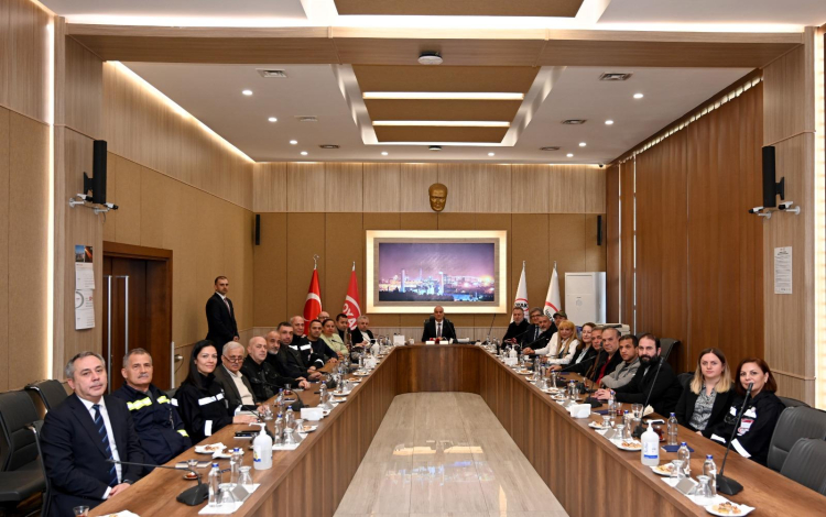 İskenderun Gazeteciler Cemiyeti yönetim kurulu ve üyelerini ağırlarken, OYAK'ın hedeflerini anlattı, limandaki modernizasyon çalışmalarını aktardı.