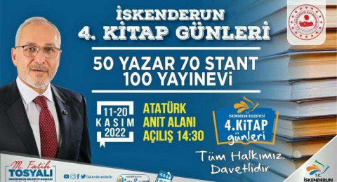 İskenderun Belediye Başkanı Fatih Tosyalı “Belediyemiz tarafından düzenlenen İskenderun 4.Kitap Günleri 11 Kasım 2022 Cuma günü başlıyor” dedi.