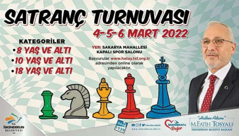 Başvurular: www.hatay.tsf.org.tr adresinden yapılmaktadır.Sakarya Mahallesi Kapalı Spor Salonunda yapılacak satranç turnuvasına başvurularda ilgi yoğun.”dedi.