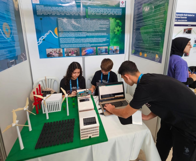 24 – 27 Şubat tarihlerinde Mersin Üniversitesi Yerleşkesindeki Bölge Finallerine katılım sağlayan gençler “Blok Zincir Tabanlı Karbon Kredi Platformu” isimli projeleri ile karbon emisyonunun azaltılmasını teşvik ederek, blok zincir teknolojisinde işlenen bir kredi sistemi oluşturdular. Bu sistemde, katılımcılar hem karbon emisyonunu azaltacak hem de kendi aralarında karbon kredi ticareti yapabileceklerdir. IoT nesnenin blok zincir entegrasyonuna dayalı bu proje, ulusal ve uluslararası düzeyde gerçekleştirilmemiş oldukça ilgi çekici bir oluşumdur.