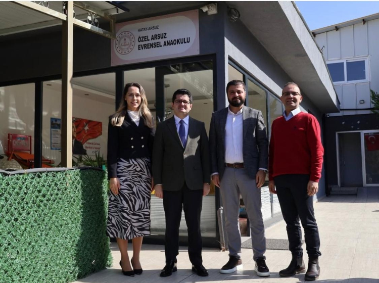 Arsuz Kaymakamı Fatih Eroğlu, ilçede faaliyet gösteren Arsuz Evrensel Anaokulu'nu ziyaret ederek okulda yürütülen eğitim-öğretim faaliyetleri, çocuklara yönelik uygulamalar ve sunulan hizmetler hakkında bilgi aldı.