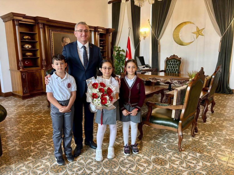 23 Nisan Ulusal Egemenlik ve Çocuk Bayramı etkinlikleri kapsamında İlçe Milli Eğitim Müdürü Ali Haytaz, 5 Temmuz İlkokulu öğretmenleri ve öğrencileri, Kaymakam Muhammet Önder’i makamında ziyaret etti.