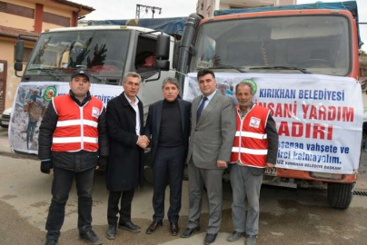 Başkan Yavuz’un çağrısına kulak veren yardımseverler ve Kırıkhan'lı hemşerilerimizin yardımlarıyla toplanan 2 kamyon insani yardım malzemesi bugün öğleden sonra Kırıkhan Belediye Başkanı Ayhan Yavuz, Türk Kızılayı Başkan vekili Şakir Günay ve Kırıkhan Belediyesi Temizlik İşleri Müdürü Ömer Faruk Güder’in işbirliğiyle Halep'e gönderildi.
