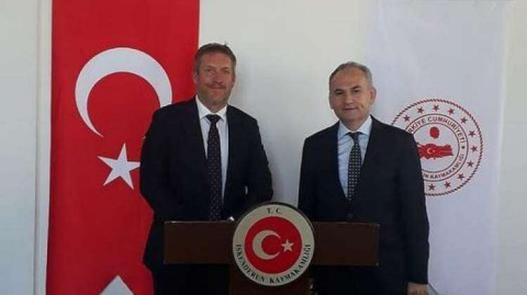 MMK Metalurji Ceo’su ve Yönetim Kurulu Başkan Yrd. Denis Kvasov, İskenderun Kaymakamı İskender Yönden’i makamında ziyaret ederek, kaymakamlığın yeni hizmet binasının hayırlı olmasını diledi.