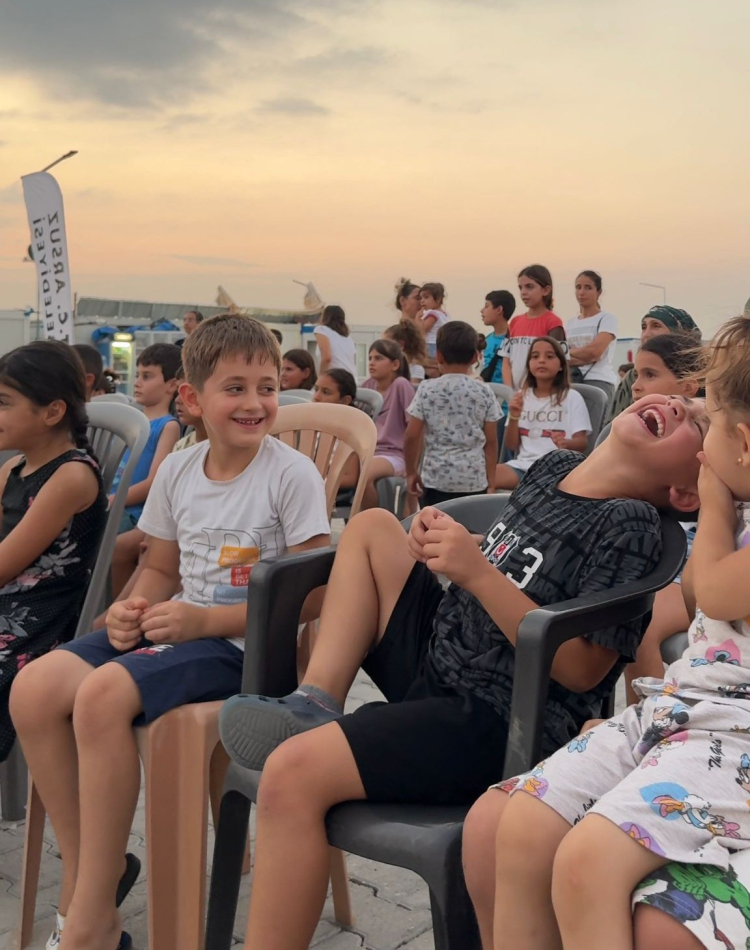 Bu özel gecede, çocuklar beyaz perdeye hayranlıkla bakarken, yetişkinler bir anlığına dertlerini unuttu. Çünkü bu sadece bir film gecesi değildi; bu, birlikte iyileşmenin, birlikte yeniden başlamanın gecesiydi.