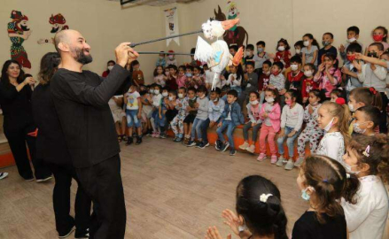 Antakya Cemil Meriç Anaokulu öğrencilerini ağırlayan Şehir Tiyatrosu oyuncuları, Nina’nın Rüyası adlı kukla oyunu ile öğrencilere unutamayacakları dakikalar yaşattı. Şehir Tiyatrosu sanatçılarının sergilediği performansla keyifli vakit geçiren minik kalpler, eğlenerek öğrenmenin tadını çıkardı.