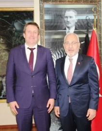 MMK Metalurji San. Tic. ve Liman İşletmeciliği A.Ş. Genel Müdürü Denis Kvasov, İskenderun Belediye Başkanı Fatih Tosyalı’ya tebrik ziyaretinde bulundu.