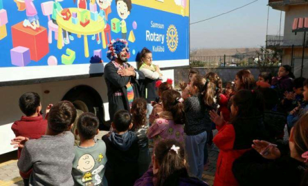 Hatay Büyükşehir Belediyesi ve Rotary Kulübünün hayata geçirdiği Mobil Eğlence ve Eğitim Aracı, Hatay’ın 15 ilçesinde miniklerle buluşuyor.