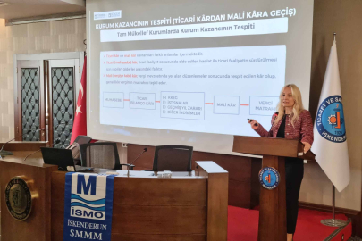 TÜRMOB SÜRGEM Eğitmeni Dr. Sabiha Turgut Genç, eğitime katılan İskenderun Serbest Muhasebeci ve Mali Müşavirlere "2024 yılı Kurumlar Vergisi Beyannamesinde Özellik Arz Eden Hususlar" konusunda detaylı bilgiler verdi.