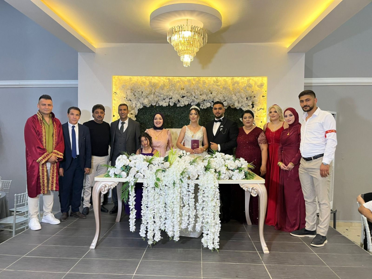 Düğün törenine Süleyman ve İlayda çiftinin aileleri, sevenleri, Belen Devlet Hastanesi çalışanları, siyasi parti temsilcileriyle çok sayıda davetli katıldı.