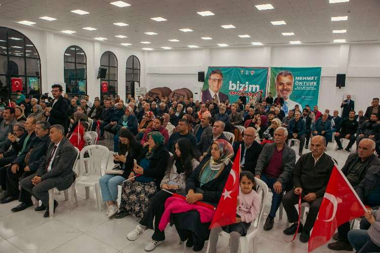 Hatay’ın beceriksiz yönetim elinde tüm büyükşehirlerden geri bırakıldığını aktaran Öntürk; “186 kilometre kıyısı olan bir ilimiz, yaylaları, dağları, ovaları olan muhteşem bir kentimiz var. Ama bu imkanları değerlendiremeyen bir beceriksiz yönetim var. Köylerde hala su, yol sorunu konuşuluyor. Kentin ulaşımını, mezbahaneleri, hallerimizi yeniden inşa edeceğiz. Kentimizin önümüzdeki 50 yılını kurtaracak su projelerimiz var. Mahalle merkezlerinde kompleks yapılar yapacağız. Toplantı salonları, muhtarlık, kadınların faaliyet göstereceği alanlar, gençlerin ders çalışacağı alanlar yapacağız. Biz milletimizin derdi ile dertlenenleriz. Ancak millete hizmet etmeyenden bu kente başkan olmaz. İnşallah 10 yıldır bu kente hizmet etmeyenleri asıl mesleklerine geri göndereceğiz. Bu şehrin kaybedeceği bir 5 yılı daha yok. Biz bu kente gerçek belediyecilik hizmetlerini kazandırarak kentimizi önümüzdeki yıl sonundan itibaren ayağa kaldıracağız” ifadelerini kullandı.