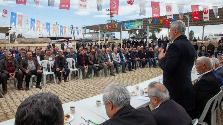 Mevcut HBB yönetiminin 6 Şubat’tan bu yana olduğu gibi 6 Şubat öncesinde de hizmette sınıfta kaldığını kaydeden Öntürk; “Hükümetimiz ilk olarak dedi ki çadırları herkese dağıtalım. Daha sonra konteynerlerin kurulumunu, ardından da konutların yapımına başlayıp ilk sene teslim etmeye başlayalım. Çok şükür ki vatandaşlarımızı önce çadırdan kurtardık. Şimdi de konteynerlerden de kurtarıyoruz. Ancak hükümetimizin inşa faaliyetlerine paralel olarak HBB yapması gereken hizmetleri yapamıyor. Karşımızda hükümetimizin çalışmalarına ayak uyduramayan adeta uyuyan bir yapı var. İnşallah sizlerin destekleriyle 31 Mart’ta başta büyükşehir belediyemiz olmak üzere 15 ilçemizi Cumhur İttifakı çatısı altında birleştireceğiz.