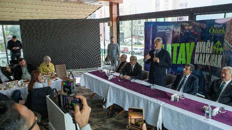Cumhur İttifakı Hatay Büyükşehir Belediye Başkan Adayı Mehmet Öntürk, basın mensuplarıyla buluşma programında derslerine sıkı çalıştıklarını ve Hatay’ı ayağa kaldıracaklarını kaydetti.