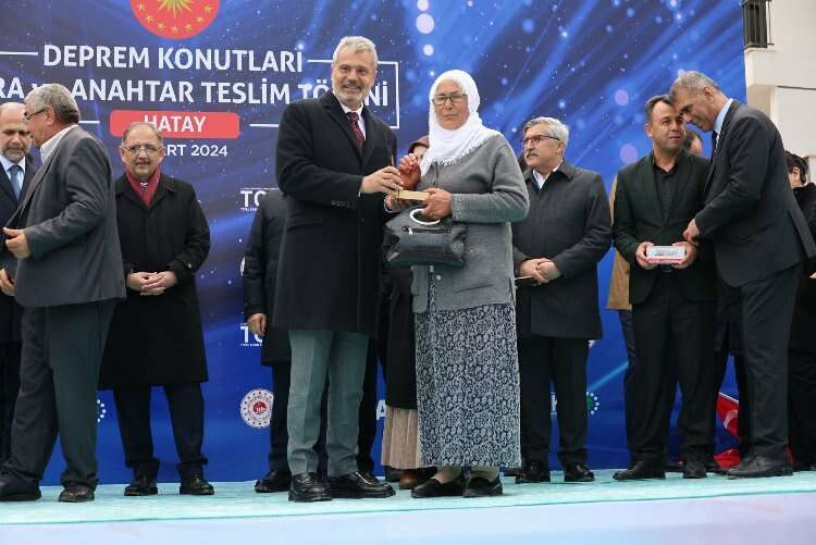 Hatay’ı ayağa kaldırmak için hükümetin var gücüyle çalıştığını belirten Öntürk; “Hatay’ımıza ne kadar hizmet etsek azdır. Mustafa Kemal Atatürk, 'Hatay benim şahsi meselem' demişti. Depremden sonra da Hatay, tüm milletin meselemiz oldu. İnşallah Hatay’ımızı ayağa kaldırmak için elimizden geleni yapacağız. Bugün burada tam 5 bin 807 konutun temelini atıyoruz. Şu an Hatay'ımızda 144 bin 611 bağımsız birimin inşası devam ediyor. 3 bin 614 konutumuzu da bugün teslim edeceğiz. Sayın Cumhurbaşkanımızın öncülüğünde başlayan konut hamlesine biz de 1 Nisan itibariyle Hatay Büyükşehir Belediyesi olarak öz kaynaklarımızla destek olacağız. Hataylı hemşehrilerimizi hızlı şekilde kalıcı konutlarına yerleştireceğiz. Kimse açta açıkta kalmayacak inşallah” ifadelerini kullandı.