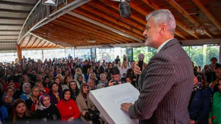 Çocuklarının işsiz olduğunu söyleyen annelere seslenen Öntürk, “Büyükşehir Belediyesi olarak vereceğimiz iş garantili kurslar ile Hatay’ın gençlerini işsizlikten kurtaracağız. 6 aylık kurs süresince maaşlarını ve tüm giderlerini de karşılayacağız. Kurtuluş savaşında nasıl ki kadınlarımız sırtlarında cephaneleri cepheye taşıyorduysa, şimdi de Hatay’ın CHP zulmünden kurtuluşu niteliğindeki 31 Mart seçimlerinde bizlere büyük destek vererek aynı fedakarlığı sergiliyorlar. Biz Cumhurun kadınları için ne yapsak az gelir” ifadelerini kullandı.