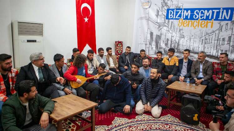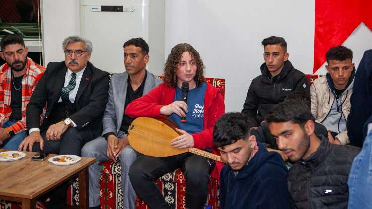 Keyifli bir sohbet ortamında geçen gençlik buluşmasında Öntürk, saz dinletisine eşlik etti.