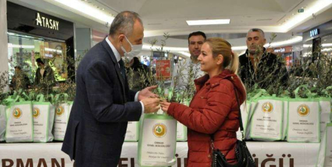 "21 Mart- 26 Mart Orman Haftası” dolayısıyla İskenderun Kaymakamlığı’nın uhdesinde ve İskenderun Orman İşletme Müdürlüğü’nün koordinesinde icra edilen programda AVM içerisindeki vatandaşlara ücretsiz olarak fidan dağıtımı yapılarak, doğaya olan hassasiyet gözler önüne serildi.