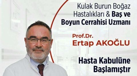 Prof. Dr. Ertap Akoğlu, 1970 yılında Kütahya’da doğdu. Dokuz Eylül Üniversitesi Tıp Fakültesi’nden 1993 yılında mezun oldu ve 1998 yılında aynı üniversitenin KBB Anabilim Dalı’nda ihtisas eğitimini tamamladı. 1999-2000 yılları arasında Eskişehir Hava Hastanesi’nde yedek subay olarak vatani görevini tamamladıktan sonra, Denizli Çivril Devlet Hastanesi’nde 2 yıl KBB uzmanı olarak çalıştı. 2002 yılında Mustafa Kemal Üniversitesi Tayfur Ata Sökmen Tıp Fakültesi KBB Hastalıkları Anabilim Dalı’na yardımcı doçent unvanı ile kurucu anabilim dalı başkanı olarak atandı. Prof. Dr. Ertap Akoğlu, 2007 yılında doçent, 2014 yılında profesör oldu. İyi düzeyde İngilizce bilen ve çok sayıda uluslararası ve ulusal dergide makalesi yayımlanan Prof. Dr. Ertap Akoğlu, yurtdışında da çeşitli görevlerde bulundu. Mustafa Kemal Üniversitesi’nde öğretim üyesi olarak yürüttüğü görevinin ardından İskenderun Gelişim Hastanesi ve Palmiye Hastanesi’nde hasta kabulüne başladı.