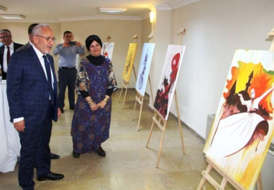 Konuşmaların ardından resim sergisi sanatseverlerin beğenisine sunuldu.