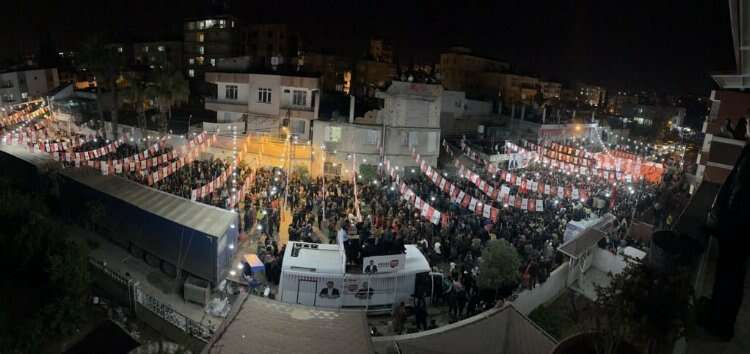 Başkan Savaş, Reyhanlı halkı tarafından yoğun ilgi ve sevgi ile karşılandı. Alana sığmayan vatandaşlar tek yürek oldu ve Savaş için sloganlar atarak destek verdi.