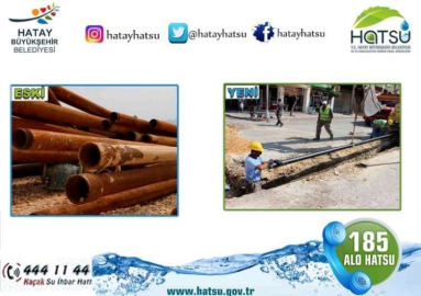 Hatay Büyükşehir Belediyesi Su ve Kanalizasyon İdaresi Genel Müdürlüğü(HATSU), çalışmalarını sürdürdüğü dev içmesuyu projeleri ile sağlığa zararlı paslı boruların bertarafını sürdürüyor.