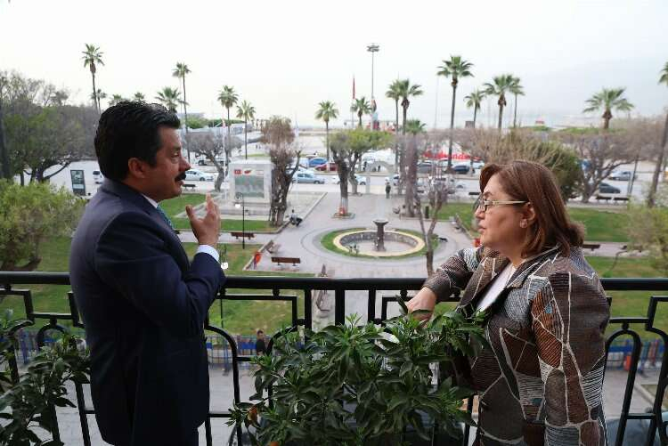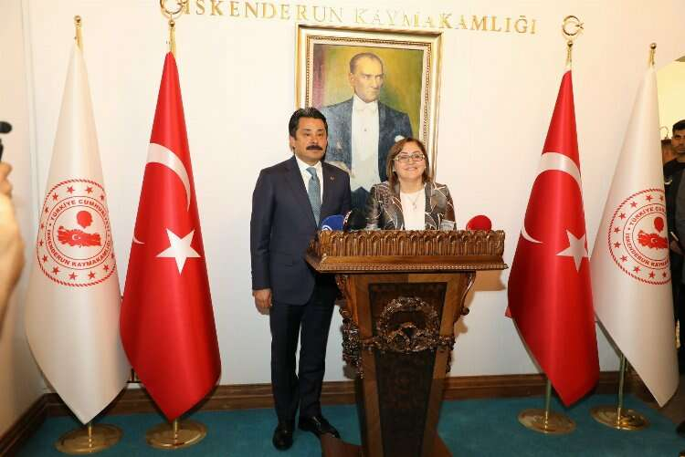 Gaziantep Büyükşehir Belediye Başkanı Fatma Şahin, yaptığı konuşmada “ komşumuz İskenderunun ve Başkan Mehmet Dönmezin yanındayız ve yanında olmaya devam edeceğiz komşuluk kültürümüz ve inancımız bunu gerektiriyor. Ekiplerimizi gönderdik ve on günde güzel ilerleme oldu bu çalışmalar çok önemli ve bize şunu gösterdi doğru başkan belediye başkanımızın ne kadar doğru olduğunu bize gösteriyor ve doğru ekip ve birlikten kuvvet doğar anlayışının iskenderun için yeni bir başlangıç yeni bir umut olduğunu gösteriyor. Biz ekip olarak Başkanımızın yanındayız yakınındayız bizden ne talep ediyor ise Gaziantep Büyük Şehirin tüm imkan ve fırsatları yanındadır yeni dönem hayırlı olsun” şeklinde konuştu.