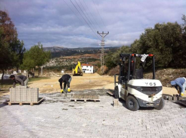Çiğdede mahallesi 10. Sokak’ta yol parke kaplama yapım çalışması sürüyor.