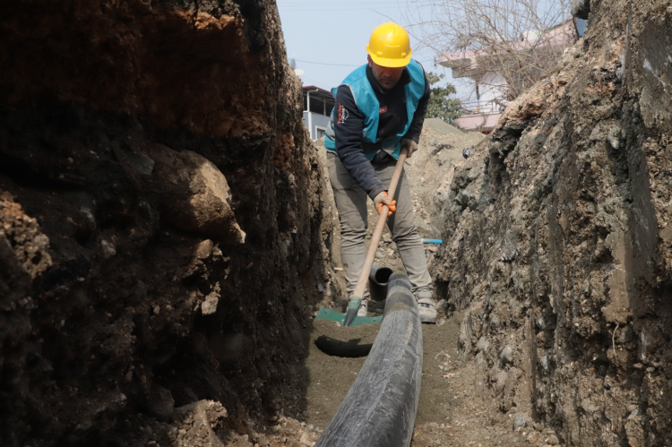 HBB Başkanı Mehmet Öntürk’ün “Hatay’da susuz ve altyapısız mahalle kalmayacak.” hedefi doğrultusunda yürütülen proje kapsamında, planlanan 125 bin 813 metrelik içme suyu şebeke imalatının %83’ü tamamlandı. Bugüne kadar 105 bin 49 metre yeni içme suyu hattı imal edildi.