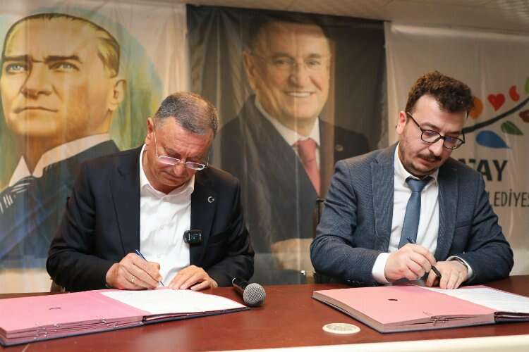 Törene CHP Antakya İlçe Başkanı Ümit Kutlu ve CHP Antakya Belediye Başkan Adayı Hüseyin Aksoy katılırken Merkezin işletmeciliğinin YSYD İnsani Yardım Derneğine verilmesi adına HBB Başkanı Savaş ve Dernek Başkan Yardımcısı Ferit Yardak tarafından protokol imzalandı.