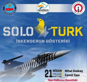 İskenderun Teknik Üniversitesi ev sahipliğinde İskenderun Kaymakamlığı ve İskenderun Belediyesi işbirliğiyle tertip edilen Solo Türk akrobasi timinin gösteri 21 Nisan 2019 Pazar günü saat 17.00’da Nihal Atakaş Camii yanında icra edilecek.
