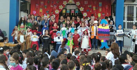 Kütüphane Haftası etkinlikleri kapsamında okul bahçesinde düzenlenen etkinliklerde öğrenciler giydikleri çeşitli kostümler ile şarkılar söyleyerek coşku içerisinde kütüphane haftasını kutladı.