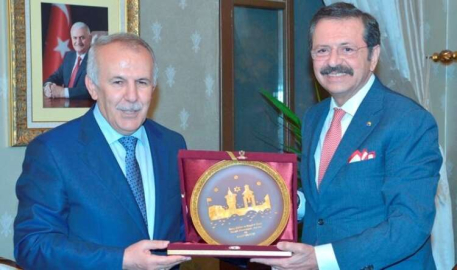 TOBB Başkanı Hisarcıklıoğlu, Hatay Valisi Erdal Ata'yı makamında ziyaret etti.