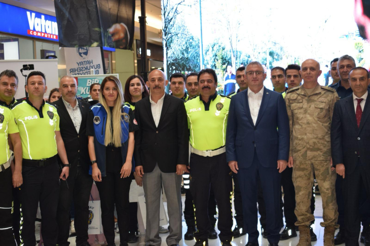 AVM’nin zemin katında düzenlenen trafik haftası etkinliğine, İskenderun Kaymakamı Muhammet Önder, İl Jandarma Alay Komutanı Tuğgeneral Ömer Ersever, HBB Genel Sekreter Yardımcısı ve Zabıta Dairesi Başkanı Gökhan Yıldırım, Hatay İl Emniyet Müdürü Kadir Gökçe, İskenderun Emniyet Müdürü Nevzat Güneş ve alanı dolduran vatandaşlar katılım sağladı.
