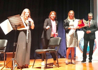 Konser sonunda 118-U Lions Kulüpleri Genel Yönetmeni Ln. Ömer Ruhi Eryurt sanatçılara plaket ve çiçek vererek teşekkür etti.