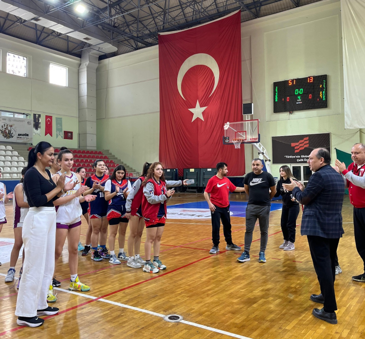 İskenderun Gençlik ve Spor ilçe Müdürü Ferit Ali Gündel, liselerarası Genç Kızlar Basketbol da Hatay Şampiyonu olan İskenderun Uğur Anadolu Lisesi'ni tebrik ederek, madalya ve kupasını takdim ederken, turnuvada ikinci olan Yükseliş Koleji Bilim Kampüsü Lisesi takımını da mücadelelerinden dolayı kutladı.