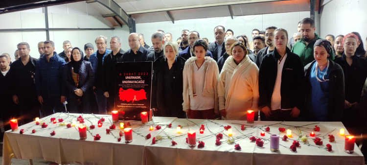 Saatler 04.17’yi gösterdiğinde, depremin başladığı o acı anda; sağlık çalışanları ve vatandaşlar saygı duruşunda bulunarak yaşamını yitirenleri andı. Ardından, kaybedilen canların anısına hazırlanan platforma karanfil bırakıldı.