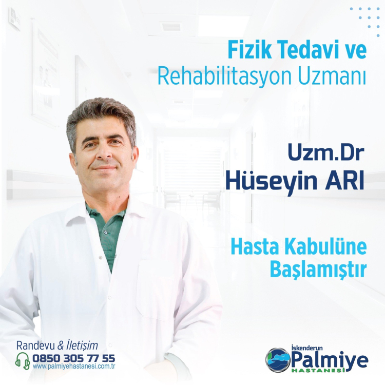 Fizik Tedavi ve Rehabilitasyon Uzmanı Dr. Hüseyin Arı, İskenderun Palmiye Hastanesi’nde hasta kabulüne başladı.