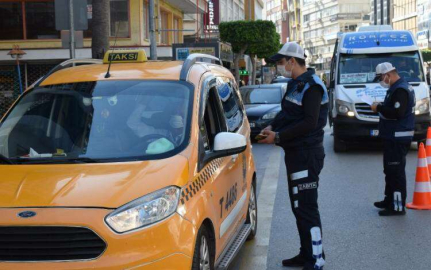 Taksilerin güzergâh izin belgelerini titizlikle inceleyen HBB ekipleri, koronavirüs tedbirleri kapsamında maske ve dezenfektan kontrolü de yaptı.