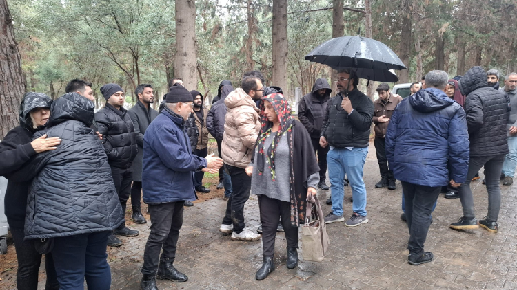 Cenaze sonrası aile yakınları, mezarlık içinde ilk taziyeleri kabul ettiler.