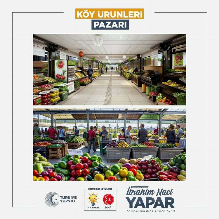 Dünyada pek çok örneği olan, kırsal kesimde yaşayan vatandaşların el emeği ürünlerini gelire dönüştürebileceği “Köy Ürünleri Pazarı” projesi ilçemiz Antakya’da da hayata geçirilecek önemli projelerden bir tanesidir. “Köy Ürünleri Pazarı” haftanın belirli günleri gerek açık gerekse mevcut kapalı pazar alanlarına kurulacak, kırsal bölgelerimizde yaşayan vatandaşlarımız tarafından yetiştirilen organik sebze, meyve, fide ve bitkiler ile el işi ve yöresel ürünlerin satılacağı yerler olacaktır. Bu sayede vatandaşlar, hem uygun fiyatlı organik ürünleri satın alma imkanı bulacak hem de üreticiler ekonomik hak kaybı yaşamadan kazanç sağlamış olacaktır.