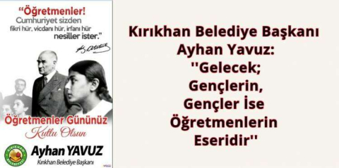Kırıkhan Belediye Başkanı Ayhan YAVUZ, 24 Kasım Öğretmenler Günü münasebetiyle kutlama mesajı yayınladı.