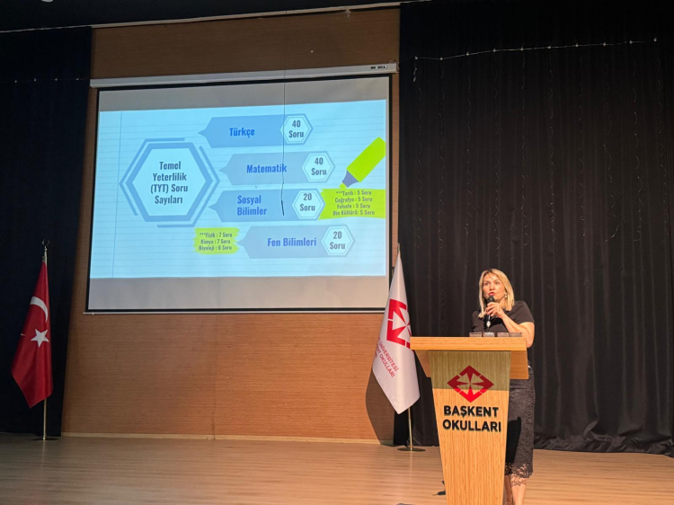 Seminerin ikinci oturumunda Hatay İl Milli Eğitim Müdürlüğü uzmanları, YKS ve LGS sınavlarına hazırlanan öğrencilere sınav teknikleri, dikkat edilmesi gereken noktalar ve psikolojik dayanıklılık konularında bilgilendirmelerde bulundu.