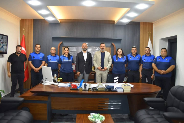 Arsuz Belediyesi Zabıta Müdürü Sinan Altan ve teşkilat personeli, Zabıta Teşkilatının 199'ncu kuruluş yıldönümü nedeniyle Belediye Başkanı Sami Üstün'ü ziyaret etti.