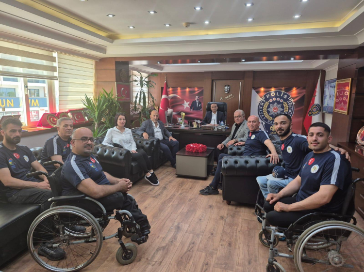 Şampiyonanın ardından kente dönen Tosyalı İskenderun Engelliler Basketbol takımı kulüp Başkanı Suat Atasever ile sporcular, İskenderun Emniyet Müdürü Nevzat Güneş'i ziyaret ettiler.
